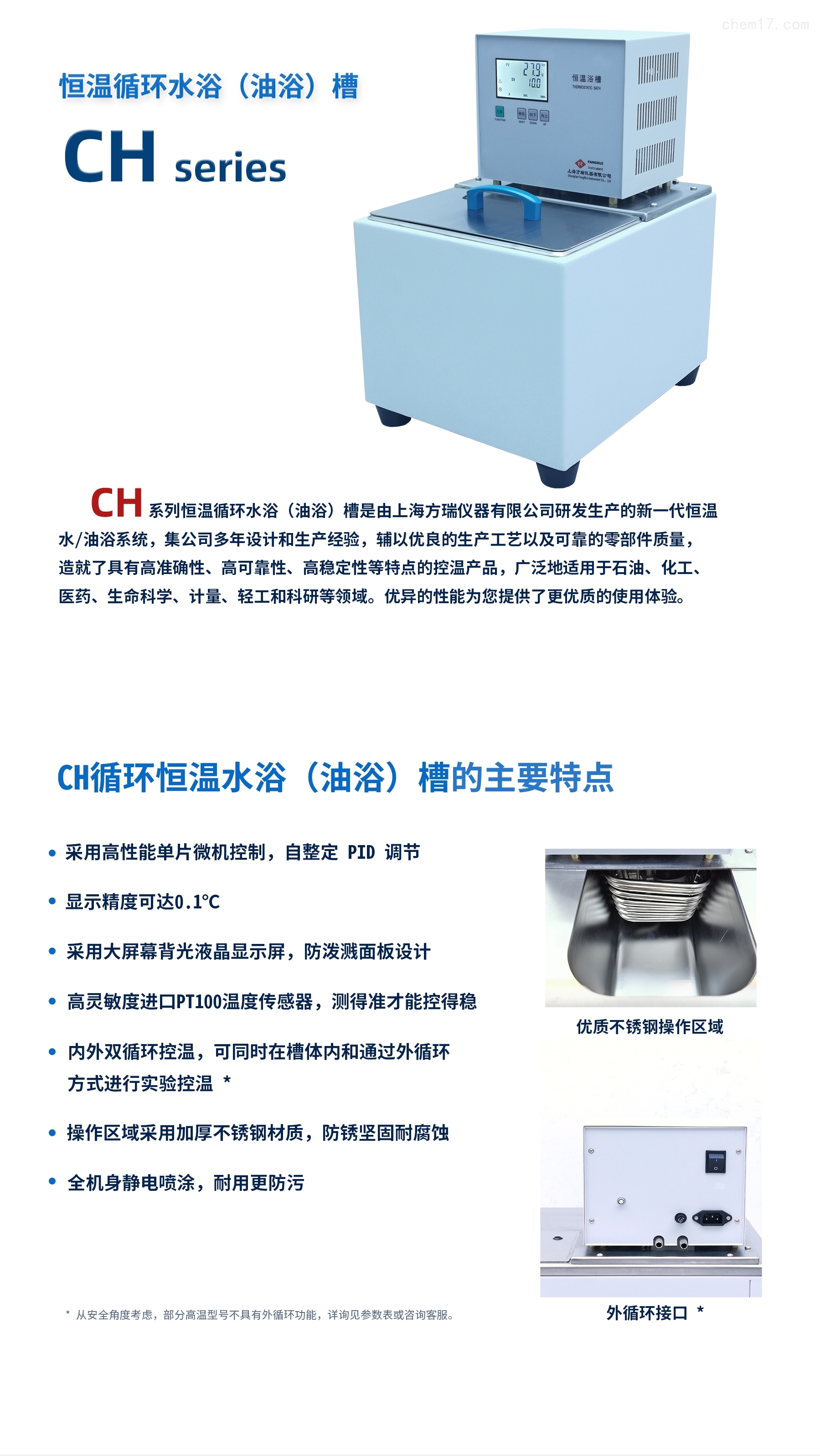 简要描述:CH系列恒温水浴(油浴)可以提供非常精确的温度控制。这意味着实验过程中需要保持恒定温度时可以排除掉温度变化的影响,从而得到更准确的数据。不仅可以控制温度,还可以在实验过程中保持温度不变。