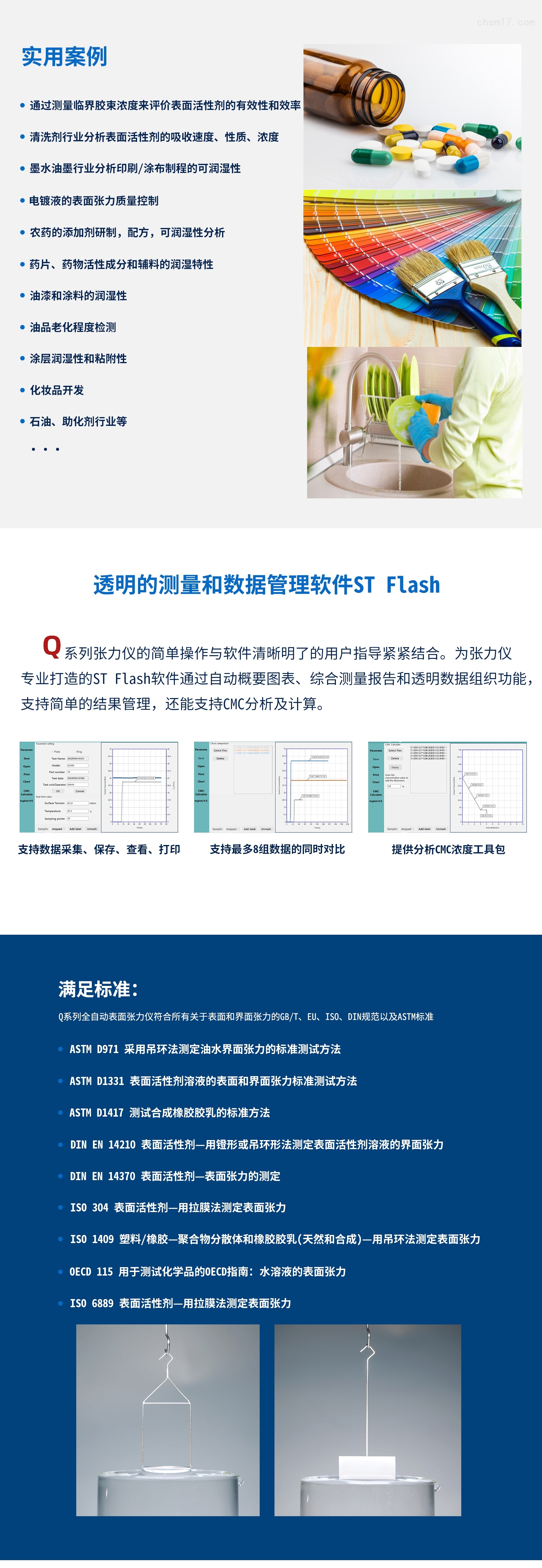 Q系列全自动表面张力仪(专业型)主要用于研究表面张力对物质的影响,进而探究物理学、化学、生物学和药学等领域中的原理和技术。高精度和高分辨率使界面张力仪成为从事科学研究和工业生产的工具之一。